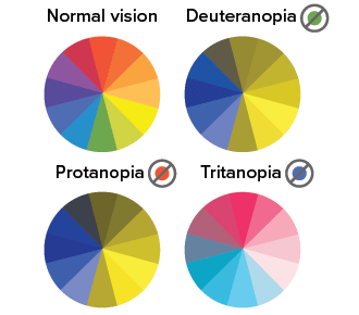 That’s right, red-green blindness makes it difficult for people to distinguish between red and green colors. There are four types of red-green color blindness: