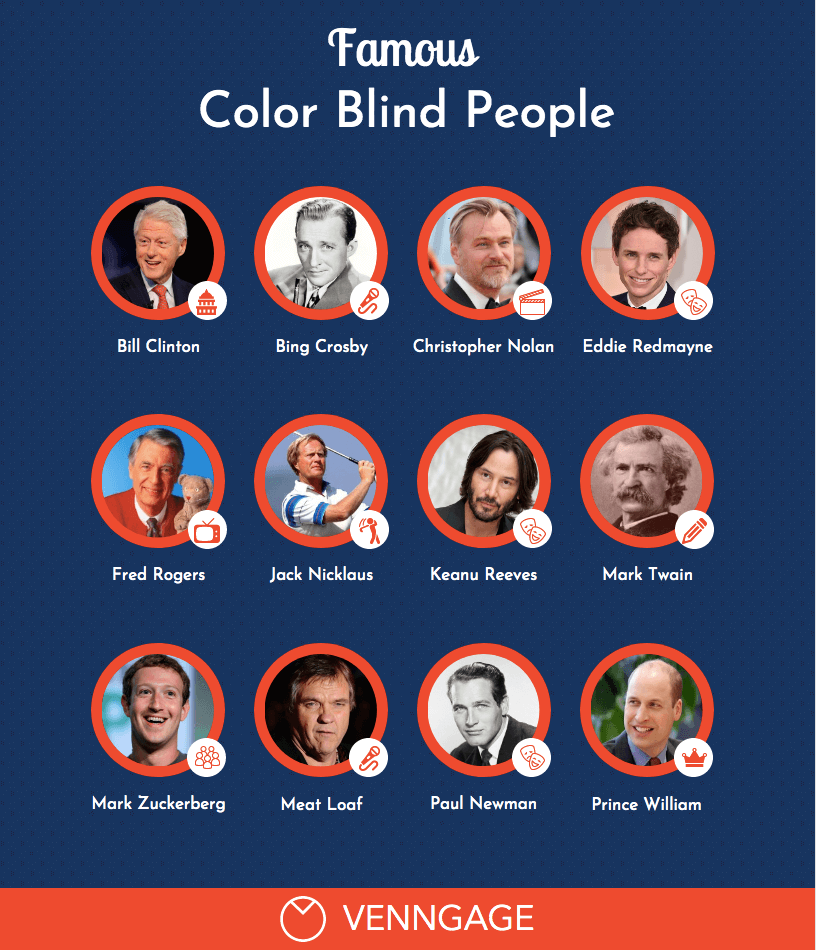 Color blindness affects 300+ million people worldwide, including some famous names such as Bill Clinton, Mark Zuckerberg, and Prince William.
