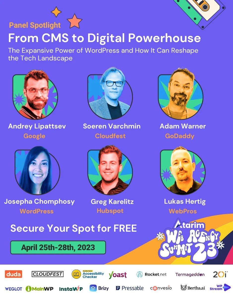 Over 20+ talks hosted by incredible people from StellarWP, Yoast, XWP, and many more on topics ranging from hiring, building great team culture, and podcasting through to SEO with recent developments in AI. All handpicked by the Atarim team to cater to what really matters in the agency, WordPress, marketing landscapes, and beyond…
