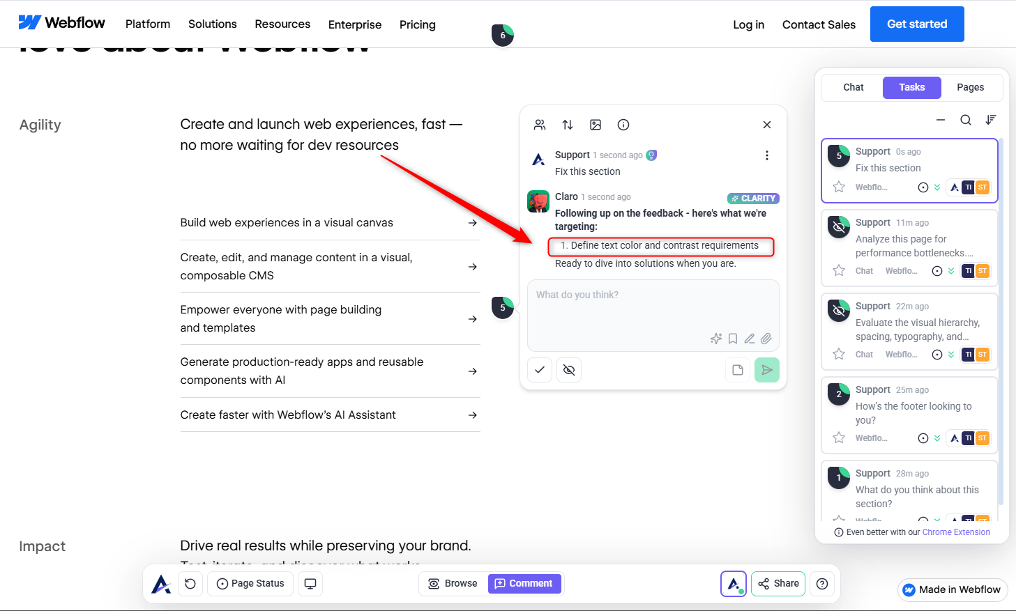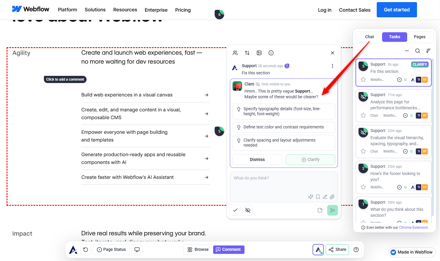 When vague comments like “Make this pop” are detected, the Claro agent rewrites them into clear, actionable suggestions. Learn More About How To Clarify Feedback Instantly with Claro