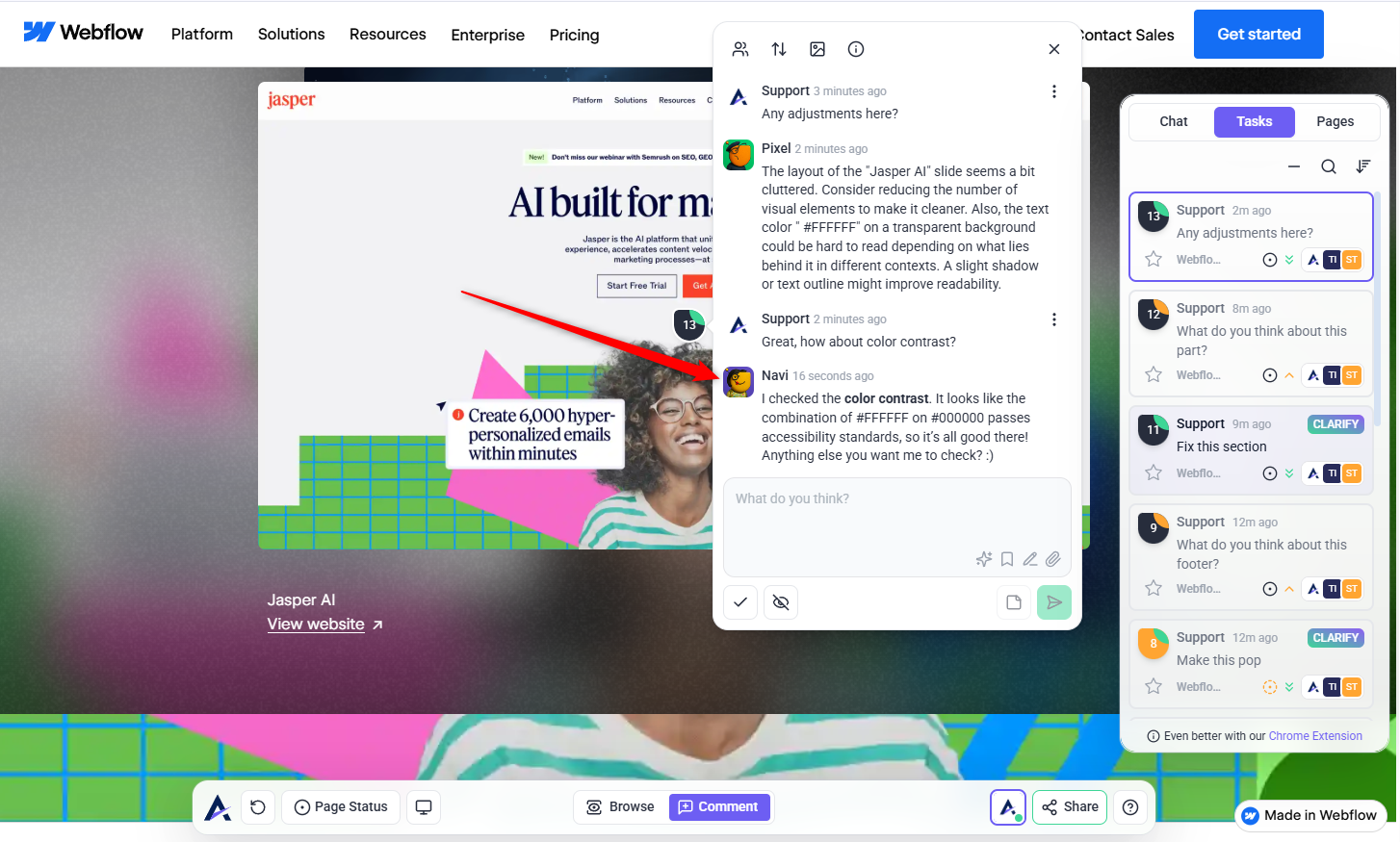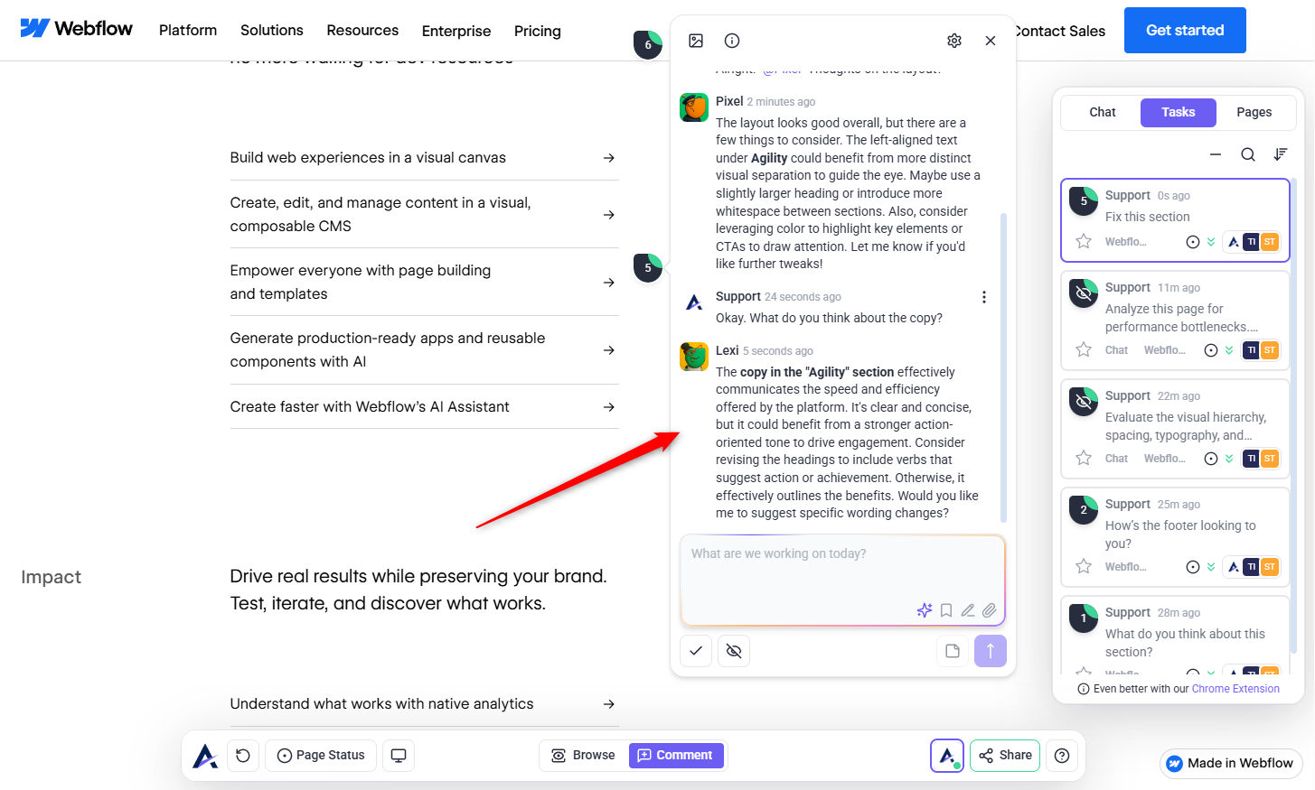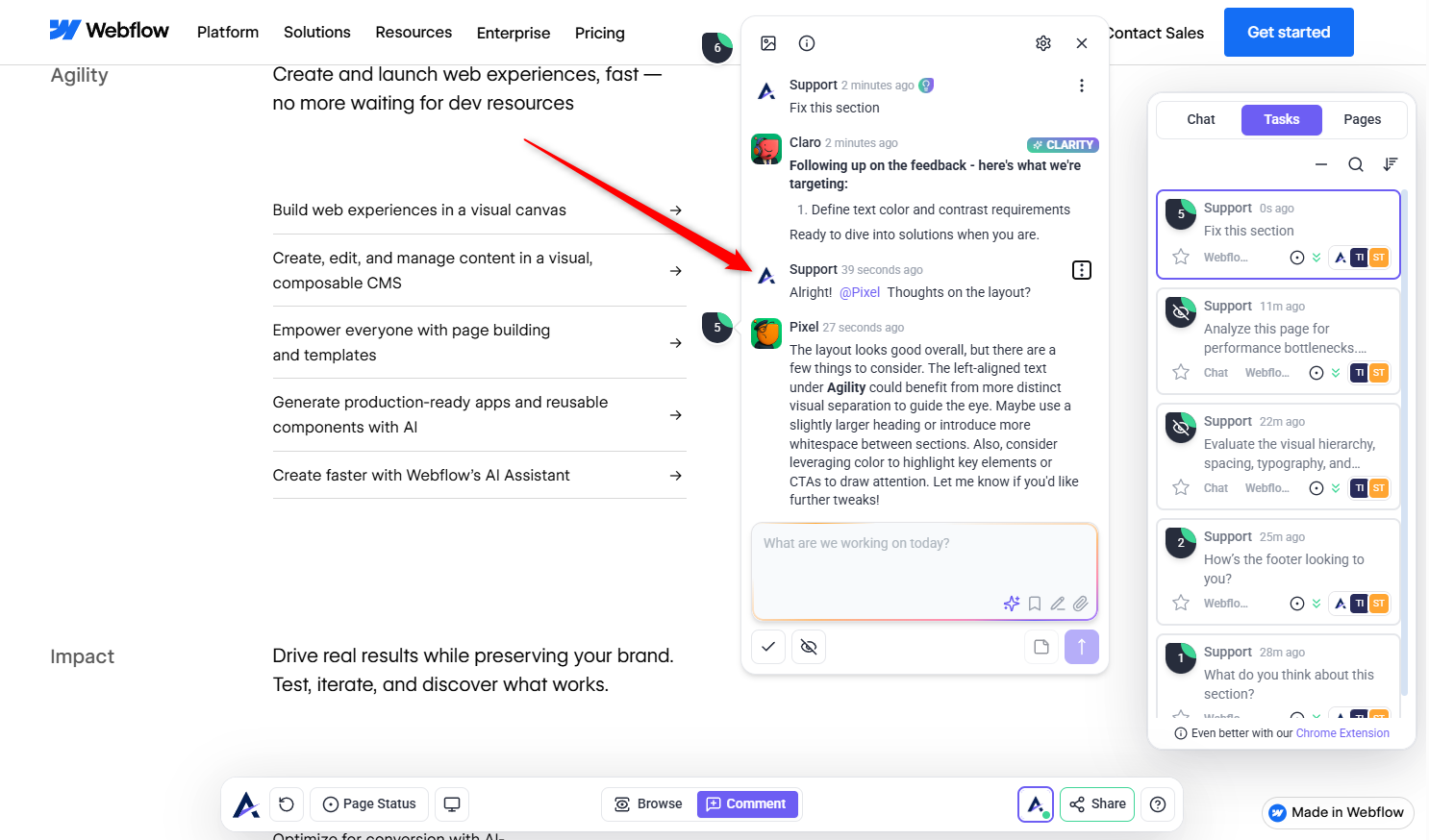 Atarim’s AI can scan your entire canvas using multiple agents to deliver strategic insights across design, structure, accessibility, and more. Learn How to Run a Page Review