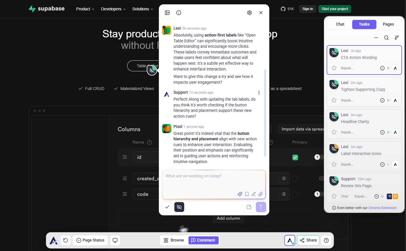 Once Lexi’s stickers appear on the page, you’ll need to decide what to do with each one. Think of this as turning her feedback into action (or discarding it if it’s not relevant). Every suggestion can either be kept to use or hidden to dismiss, and important ones can also be converted into tasks for your team.
