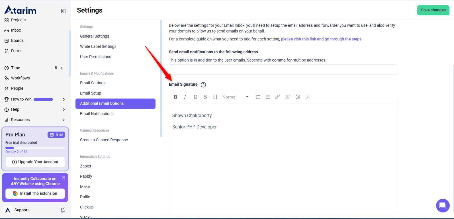 Adding an email signature in Atarim is a great way to create a consistent and professional brand image. Whether using a simple text format or a fully customized HTML version, you can ensure your emails leave a lasting impression.