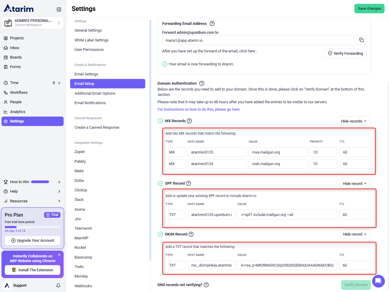 Step 3: Verify Your Domain in Atarim