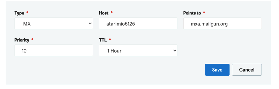 - Select MX as the record type.
