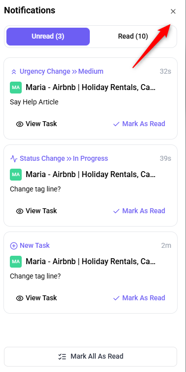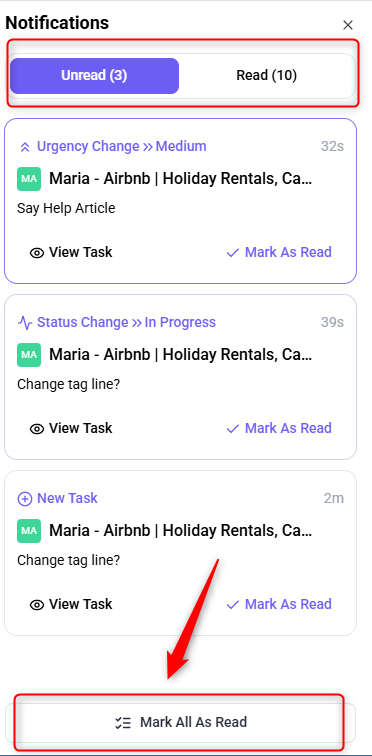 - Use the toggle at the top to switch between Unread and Read notifications.