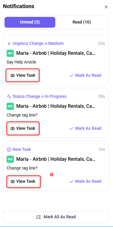 Note: Clicking on a task notification will take you directly to the related task for faster access.