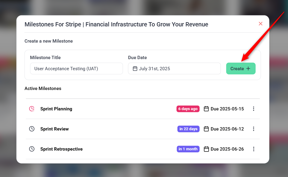 - Enter a clear name for the milestone (e.g., “Homepage Review,” “Final Approval”).