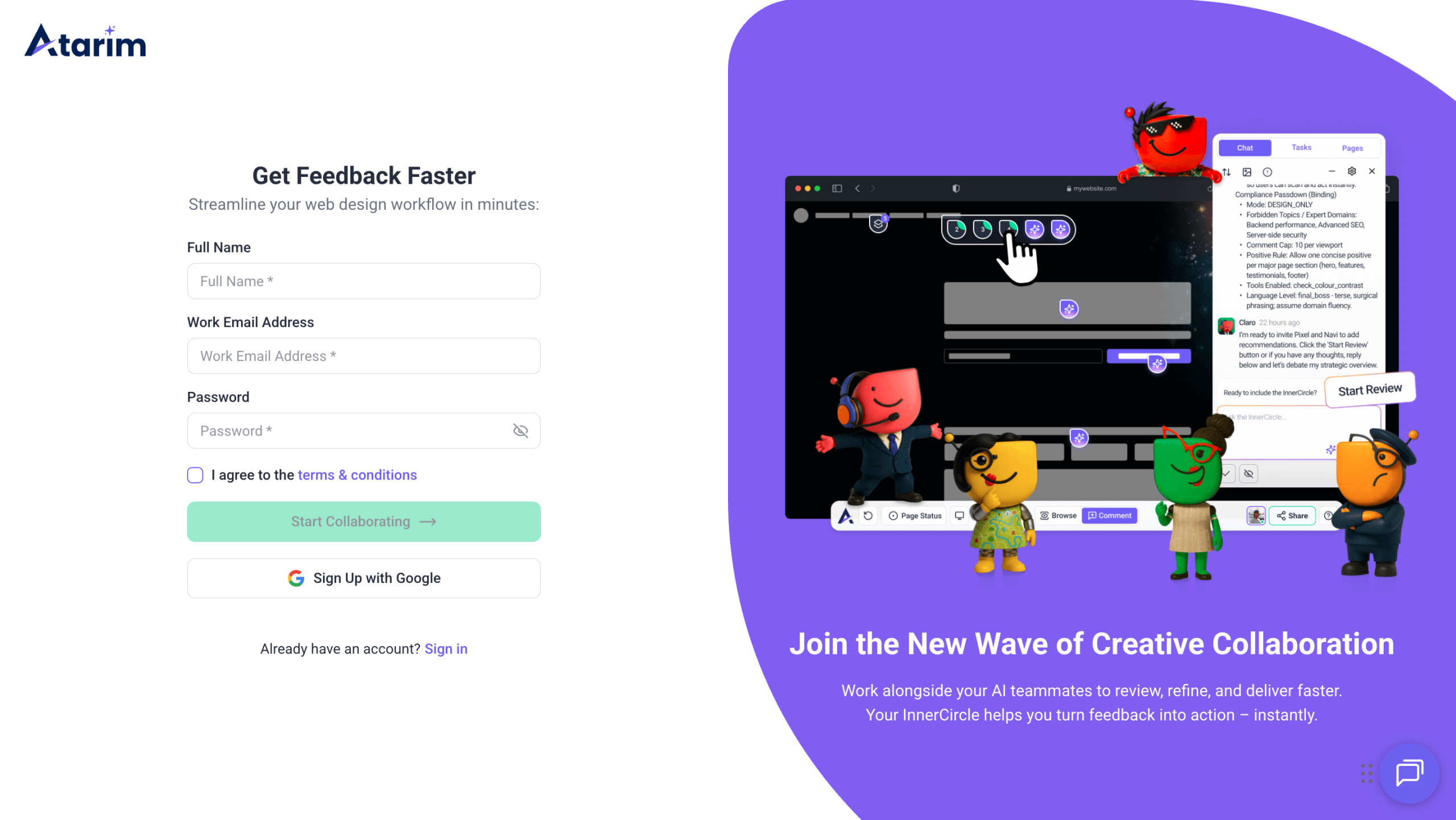 Before you can start managing projects or collaborating, you need to set up your Atarim account.