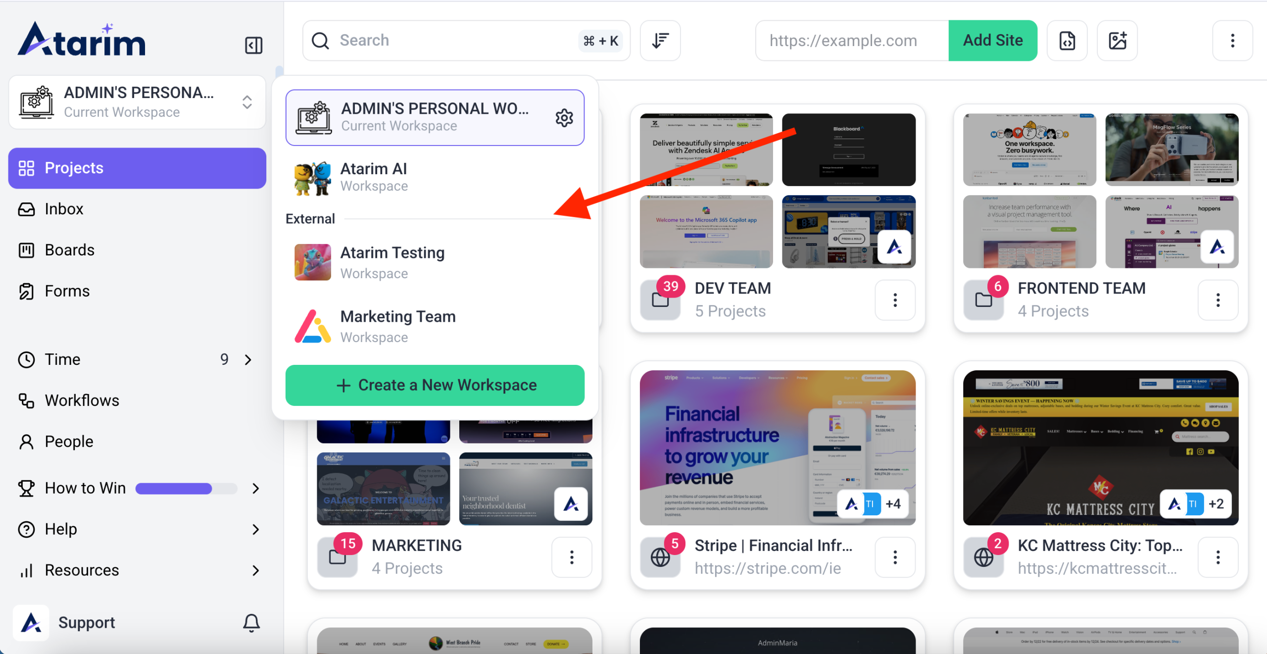 - Websites with the Atarim WordPress Plugin installed will be listed.