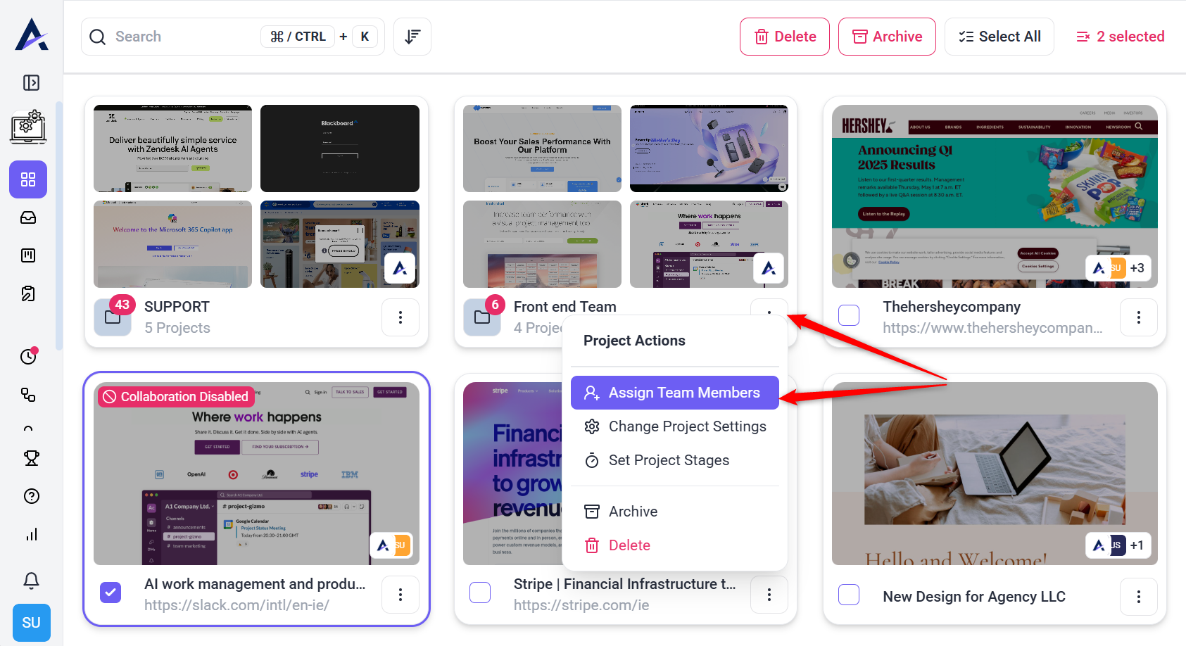 - Click on the Three Vertical Dots (Project Settings) or user list on the project card or row.