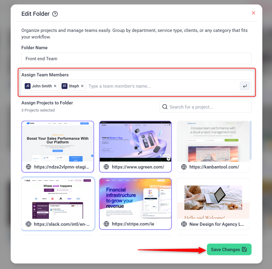 - Assign team members to an entire folder to provide access to all projects within that folder: