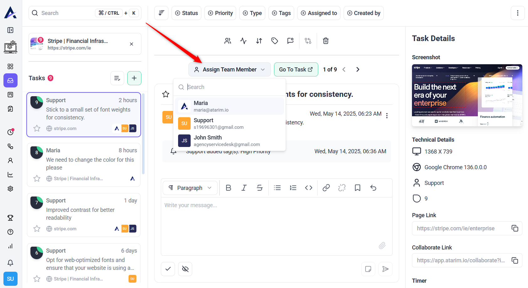 Streamline collaboration by assigning the right projects and tasks to the right team members with Atarim.