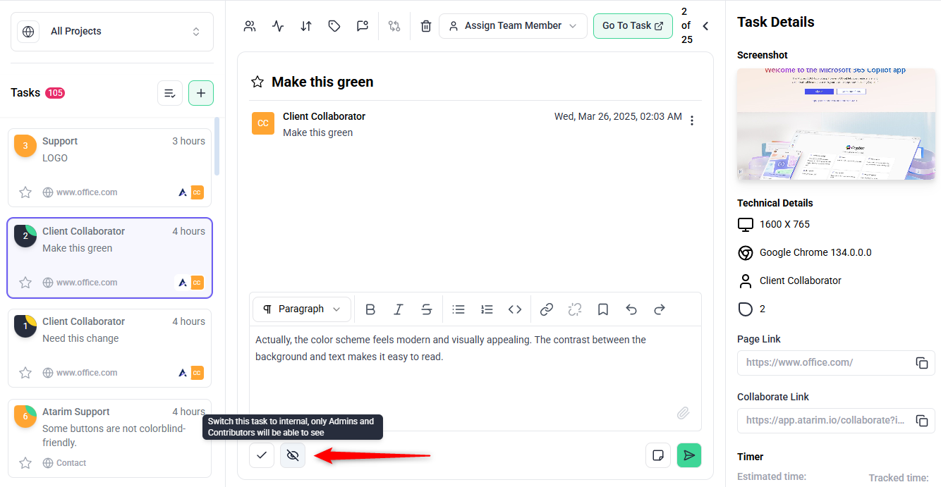 Yes, Atarim offers advanced filtering options. Navigate to the Boards or Inbox, and use the filters to sort tasks.