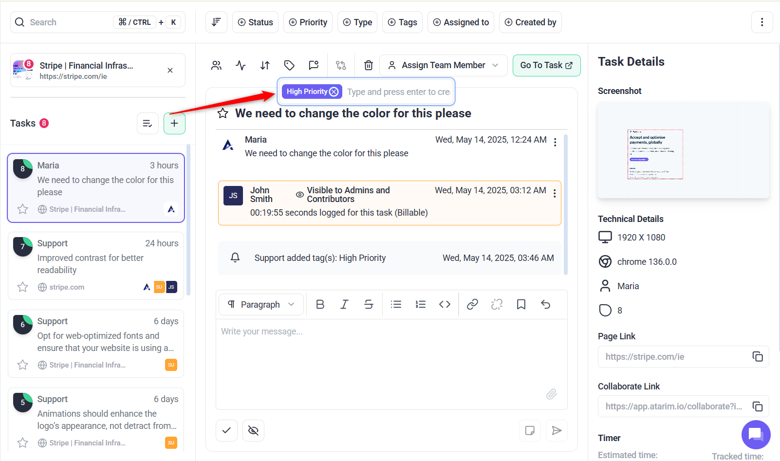 You can tailor tags to fit your team’s unique needs, whether you’re tracking feedback types, issue severity, or client requests.