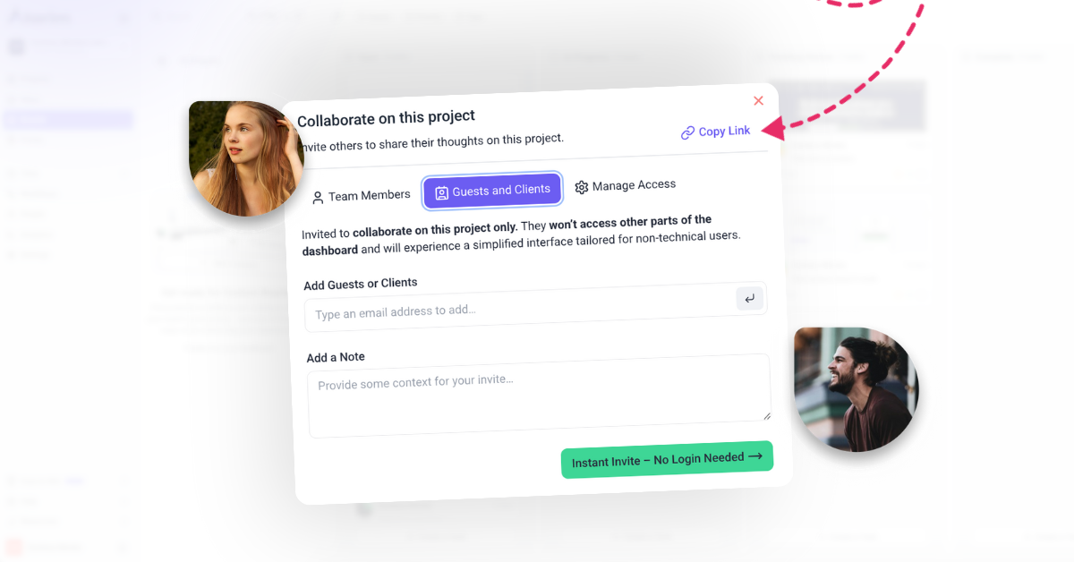 Atarim allows you to invite external stakeholders without requiring them to create full accounts. This ensures a seamless experience for clients and collaborators.