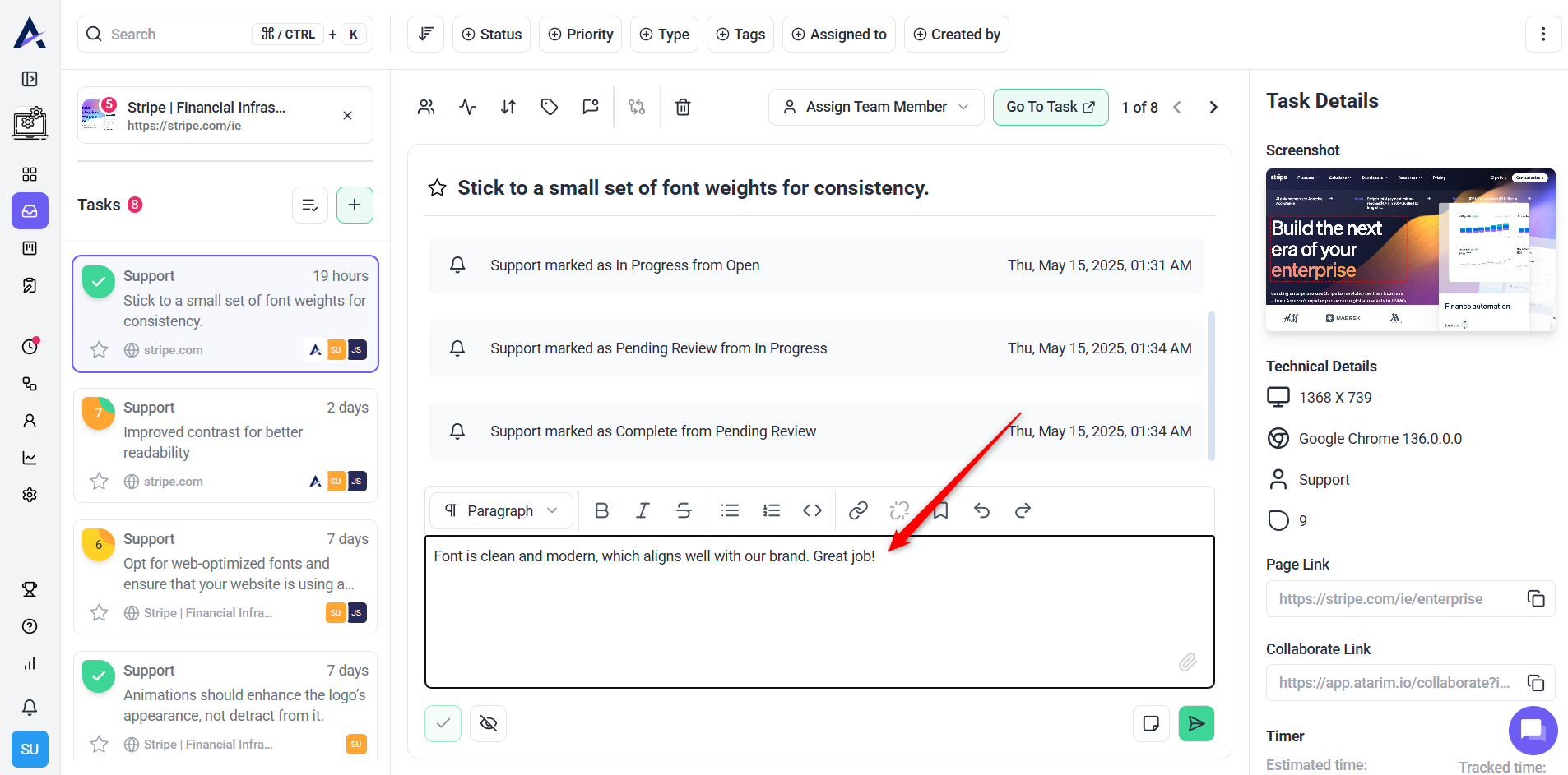 Recommendation: Encourage clients to leave specific, actionable feedback to avoid ambiguity. Even if they leave vague feedback, the auto screenshot provides you the context you need