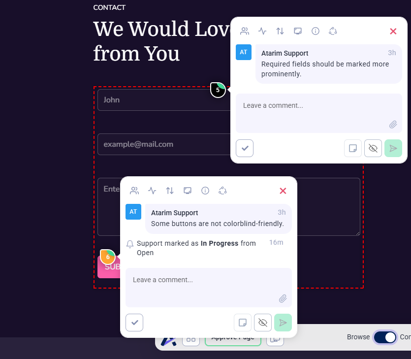 Atarim’s visual collaboration tools make it easy for external collaborators to leave actionable feedback directly on assets.