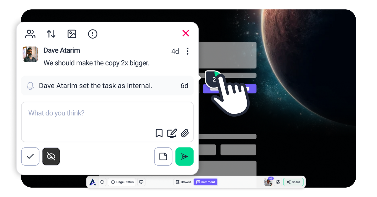No more chasing files or guessing which version is right. With Atarim, your team works together in one place, updates happen live, and sharing is instant.